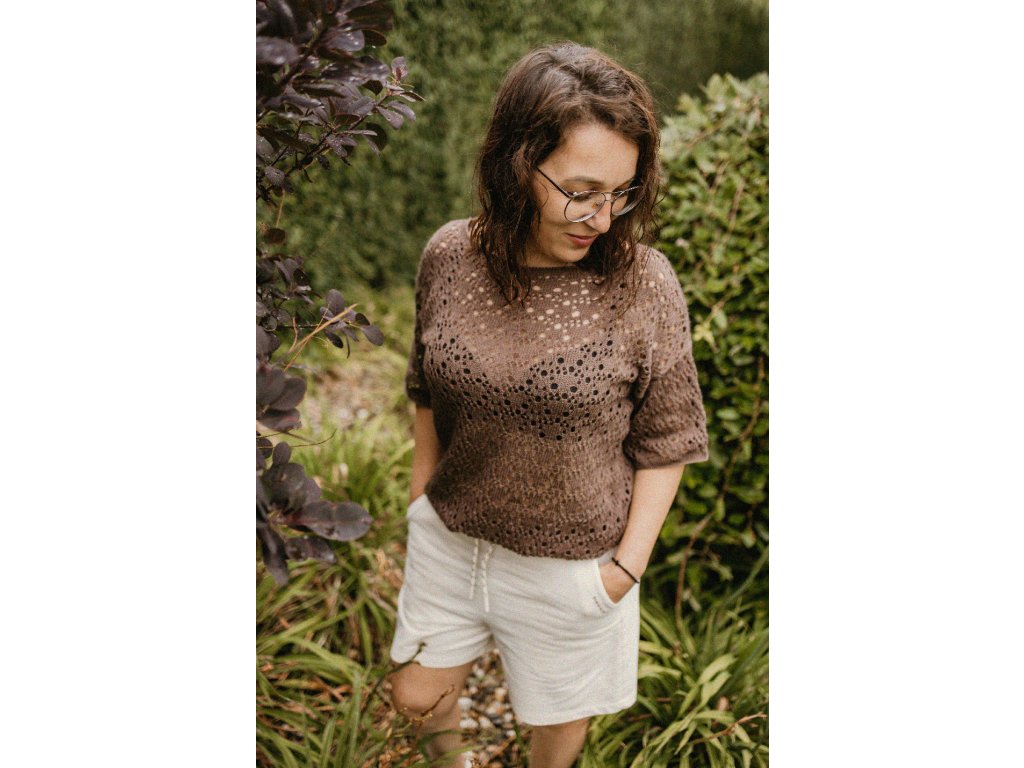 Tento svetřík je ručně pletený z výjimečné kopřivové příze. Materiál je lehký, prodyšný a přitom příjemně hřejivý. Díky tomu je ideální pro dny, kdy chcete cítit komfort bez těžkosti.
